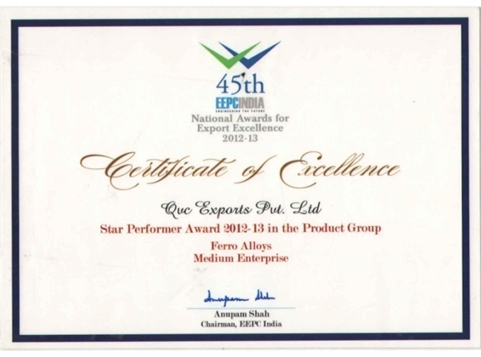 QVC has been rewarded with the prestigious EEPC National Award for three consecutive years i.e., year 2010-2011, 2011-2012 & 2012-2013,2014-2015,2016-2017.