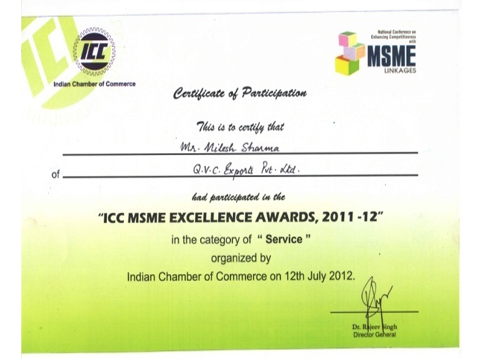 QVC has been rewarded with the “ICC MSME Excellence Award for the Year 2011-2012”.